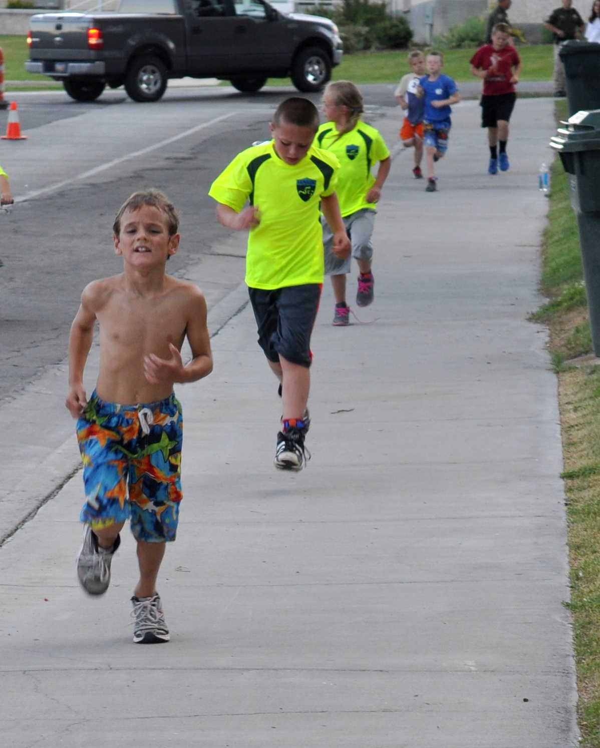 Tacoma and Malia did the kids triathalon which was swimming one length of the swimming pool biking two times around complex and running one time around Tacoma wanted to do it without a life jacket and I was really scared a couple of times I thought he was drowning because he was going under and taking a while to get back up and my friend panicked me by saying hes drowning so I screamed at the life guard but she looked at me like I was nuts. Tacoma came out after several kids but he made it up on the bike and the run he came in first for his age group but was disqualified because his timing chip fell off in the pool. Tacoma tried so hard and sprinted his guts out against Ty mortenson. Malia had a smile on her face the whole time she is always happy in everything she does. Naomi wanted to do it so bad but there wasn't an age bracket for her